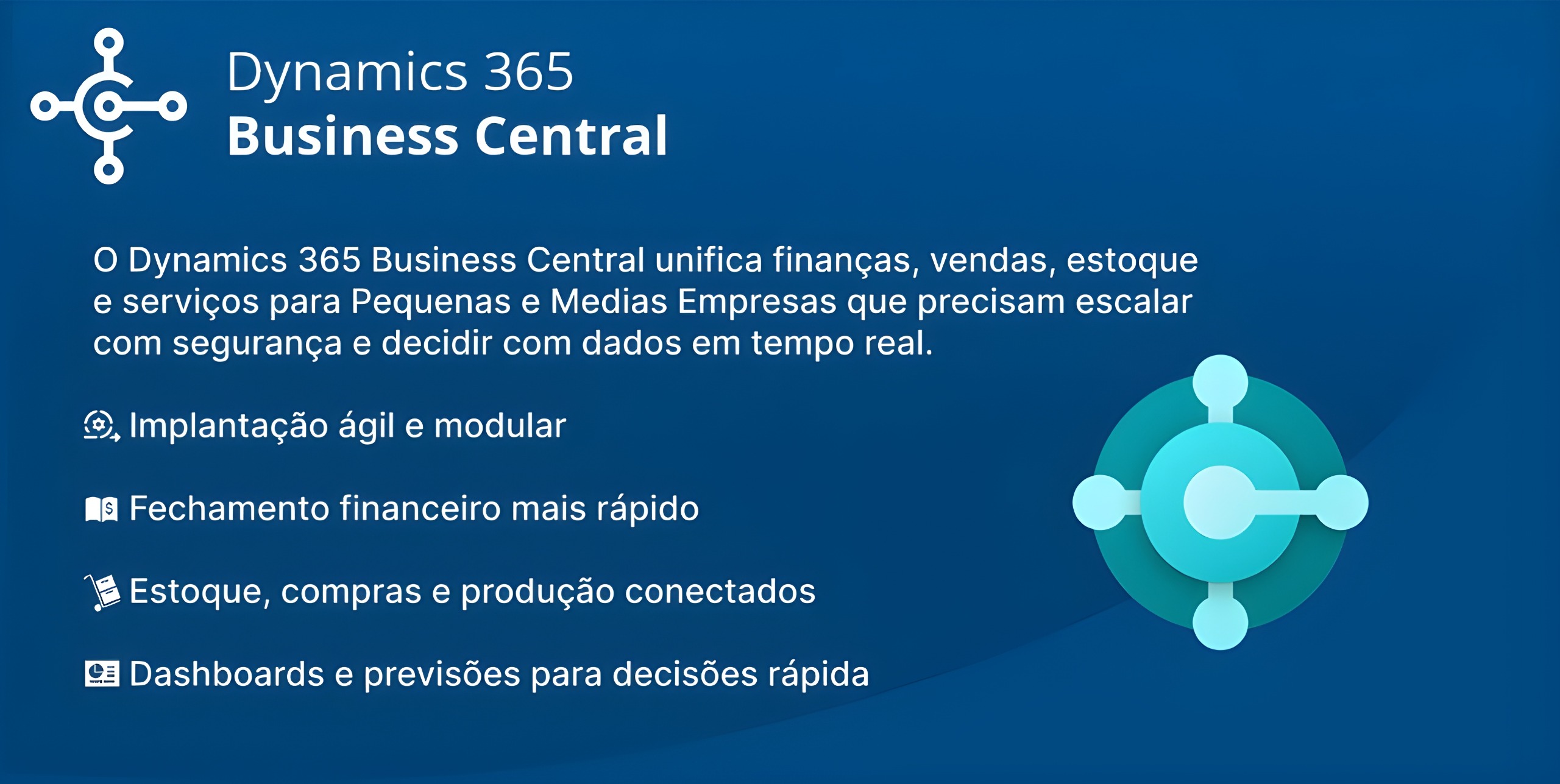 Solução ERP moderna em nuvem para PMEs com integração nativa ao Microsoft 365 e Power Platform.